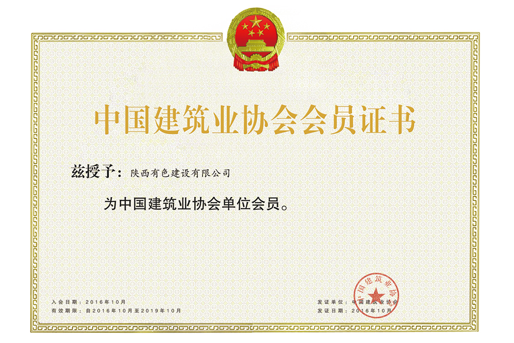 Certificate of China Construction Industry Associa...