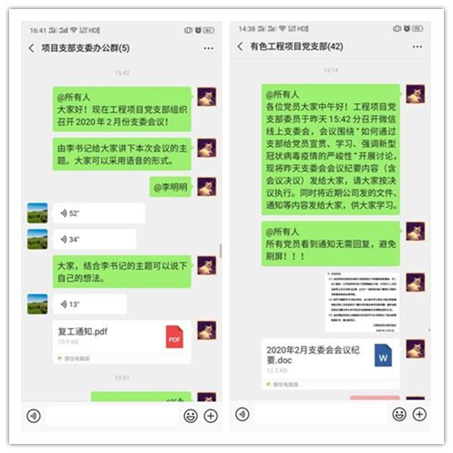 2月9日下午,公司工程項目黨支部利用微信群線上召開支委會,圍繞“如何切實發揮黨支部作用,帶領支部黨員團結一致做好疫情防控工作”展開討論,形成近階段支部工作決議。