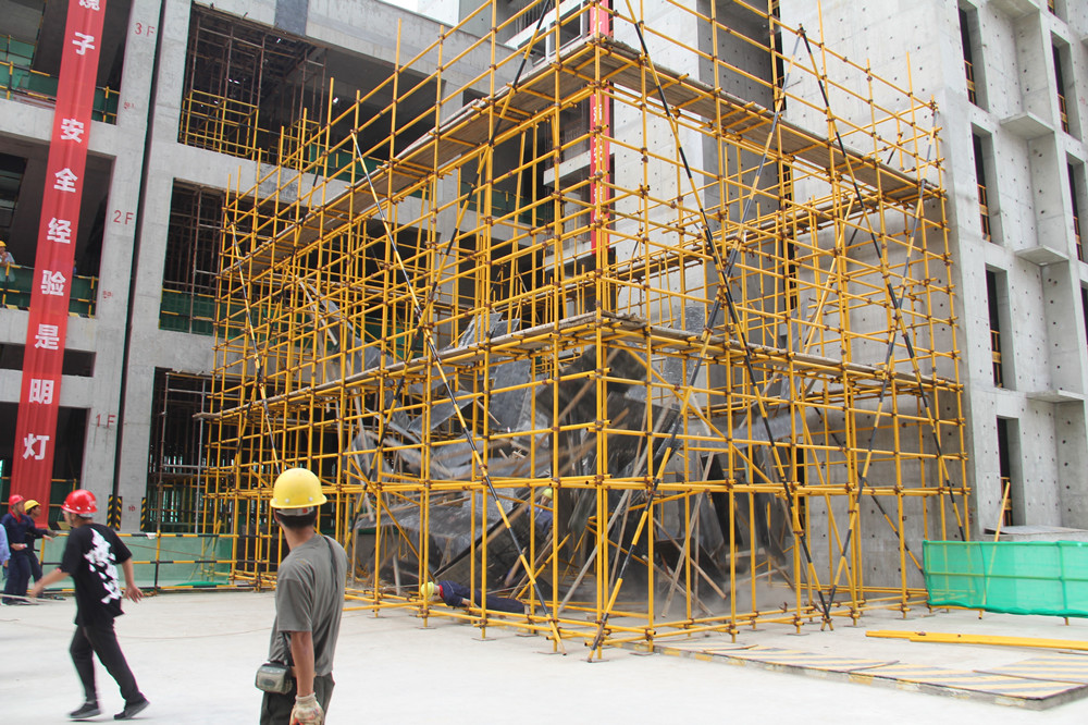 為確保此次演練圓滿完成,針對建筑業易發生的安全隱患,公司選定了高架支模坍塌演練科目。為貼近實際,并能夠反映事故發生后應急響應及救援的真實效果,生產運行部前期編制了專項應急預案,不斷進行現場排演,完善不足,多次修訂演練腳本,最終確定了切實可行的演練方案。