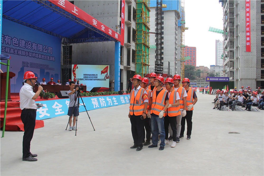 6月29日上午,公司在金堆城長安東區項目部組織開展了一次“高架支模坍塌應急演練”活動,本次演練活動由公司生產運行部組織主辦、金堆城長安東區項目部承辦。有色西勘院有限公司總經理常禮安、安全處處長黃金海、金堆城花園建設工程指揮部指揮長張文輝、書記鄭展龍、公司董事長盧曉嵐、總經理楊明鈺、副總經理史濤、陜西華秦建設監理有限責任公司總監李明及其他工程公司、分公司、項目部相關負責人參加了此次觀摩。