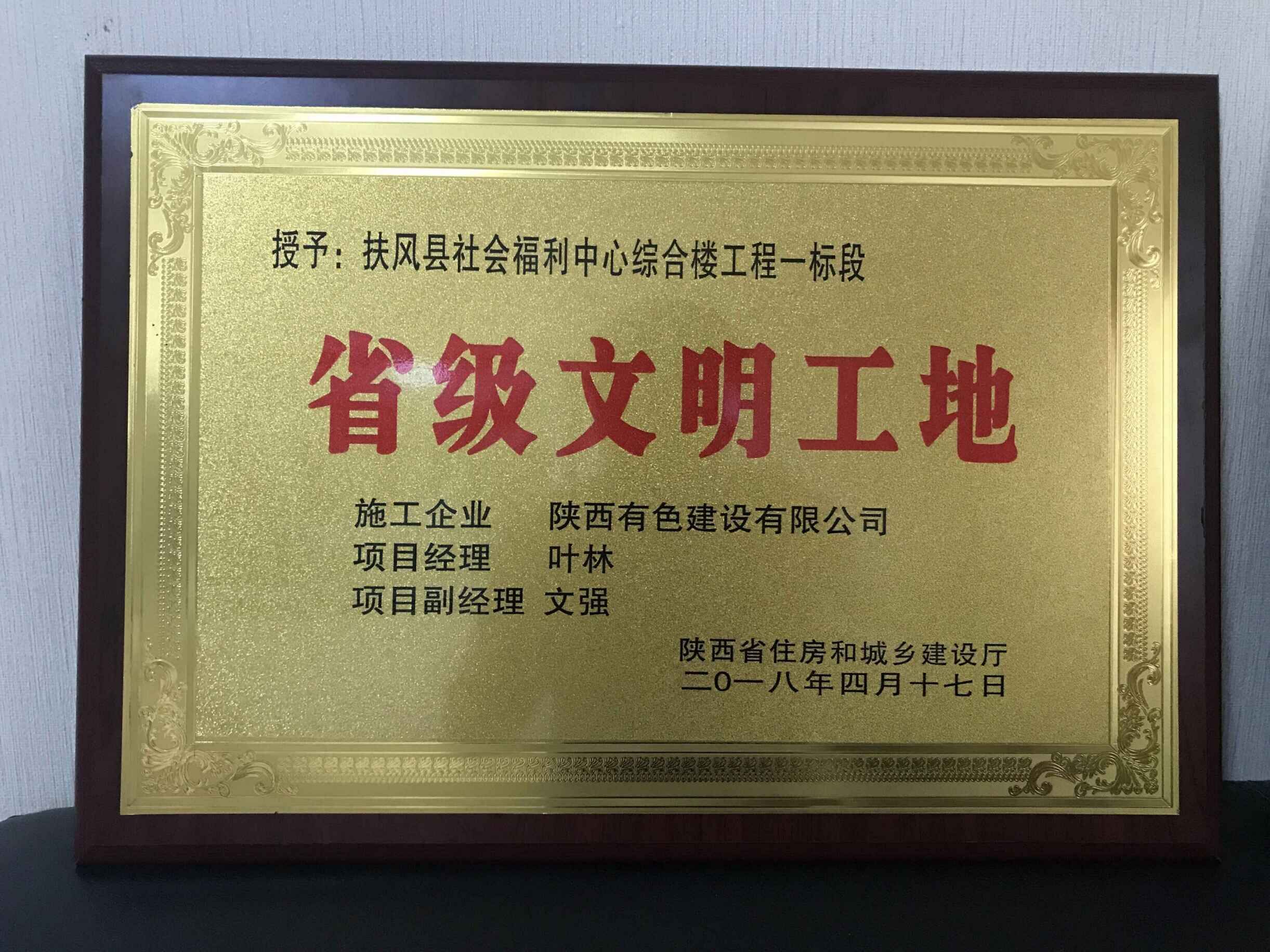 近日,從陜西省住建廳傳來喜訊,陜西有色建設(shè)有限公司承建的扶風(fēng)縣社會(huì)福利中心綜合樓一標(biāo)段工程榮獲“2018年度省級(jí)文明工地”稱號(hào)。
