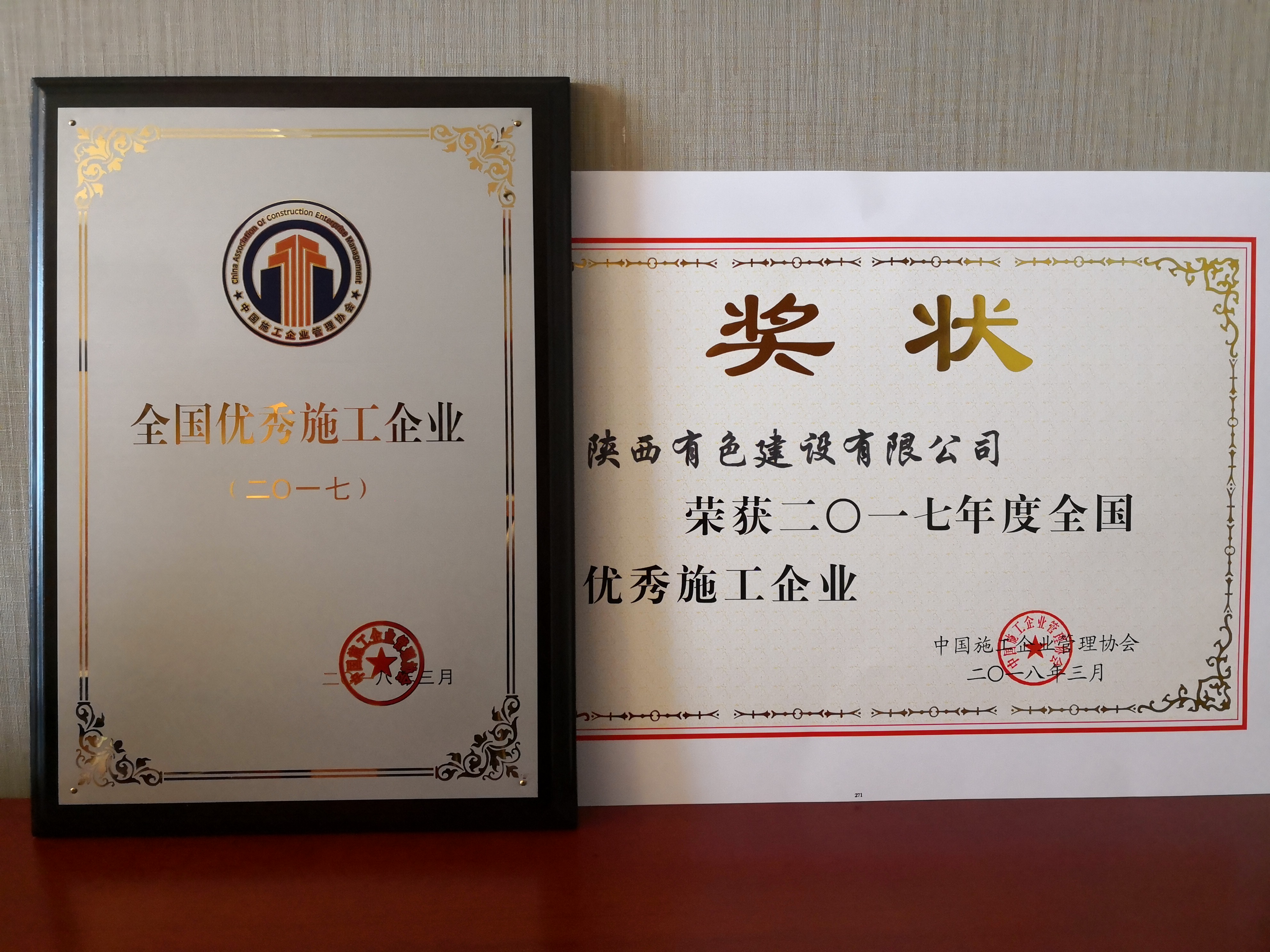 近日,由中國施工企業(yè)管理協(xié)會組織評選的2017年度全國優(yōu)秀施工企業(yè)評審結(jié)果揭曉,陜西有色建設(shè)有限公司榮獲2017年度全國優(yōu)秀施工企業(yè)。