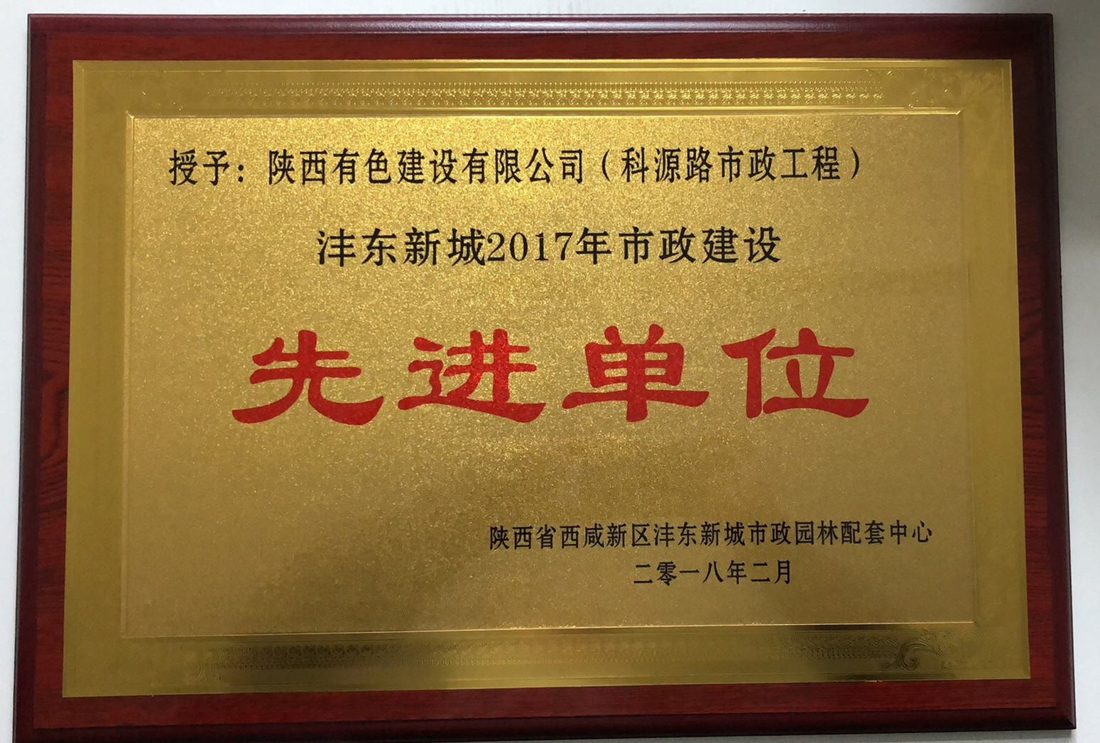 有色陜建被西咸新區灃東新城市政園林配套中心授予“先進單位”光榮稱號