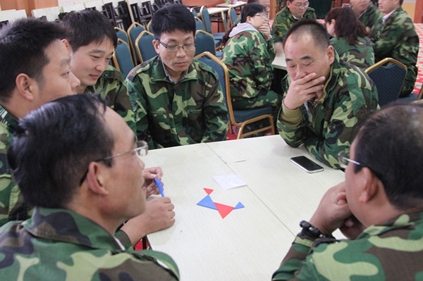 本次拓展訓練有幾個鮮明的特點。首先,參加拓展訓練的成員均為公司中層以上領導崗位人員,他們溝通協調能力強,團隊相對穩定,經過多年的工作配合,默契程度較高;其次,在結構層次上主要是以公司和生產單位的負責人為主,參與人員遍布公司各個核心管理崗位,他們位居要職,長期緊張工作,屬于思維可能陷入某種慣性模式的管理者。再次,參加培訓人員的生活經驗相對豐富,社會閱歷較多,且大部分領導人在平日的工作中屬于決策型的角色,目光敏銳,反應也迅速、準確。