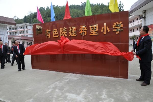 儀式上,中共大坪鎮(zhèn)黨委書記王世淳在致辭中對(duì)陜西有色建設(shè)有限公司的義舉表示感謝,并送上“捐資助學(xué)、行善若水、心系教育、厚德載物”感謝牌匾。陜西有色建設(shè)有限公司黨委書記、總經(jīng)理?xiàng)钗榱衷趦x式上致辭,對(duì)學(xué)校和全體師生提出了殷切希望,同時(shí)代表公司表示將一如既往地開展這項(xiàng)愛(ài)心行動(dòng),主動(dòng)承擔(dān)企業(yè)的社會(huì)責(zé)任,積極回報(bào)社會(huì)。鎮(zhèn)安縣教育體育局湯洪新局長(zhǎng)聘請(qǐng)?jiān)撍緞⒖∏喽麻L(zhǎng)為有色陜建希望小學(xué)名譽(yù)校長(zhǎng)并頒發(fā)聘書。儀式上對(duì)6名優(yōu)秀教師各發(fā)放了壹仟元的慰問(wèn)金,對(duì)23名三好學(xué)生給予了獎(jiǎng)勵(lì);對(duì)68名貧困學(xué)生捐贈(zèng)了書包、文具盒、鋼筆、彩筆等學(xué)習(xí)用品共200余件。最后,中共鎮(zhèn)安縣委常委、宣傳部部長(zhǎng)陳正斌,陜西有色建設(shè)有限公司董事長(zhǎng)劉俊青為“有色陜建希望小學(xué)”揭牌。