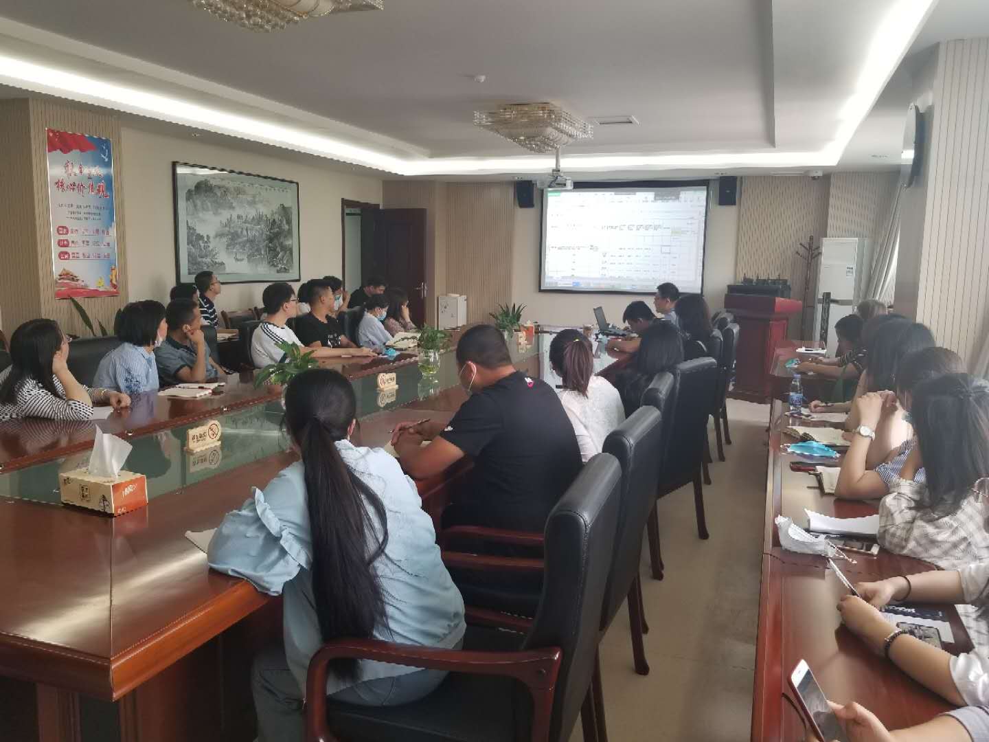 本次專題會分為兩個部分,由生產(chǎn)運行部計劃統(tǒng)計業(yè)務(wù)副主管鈕雷主講。第一部分鈕雷從統(tǒng)計法律知識介紹、公司基本情況、建筑業(yè)現(xiàn)狀分析、統(tǒng)計報表填報規(guī)范等方面入手,就強化統(tǒng)計業(yè)務(wù)人員的思想認識和保密意識、加深統(tǒng)計業(yè)務(wù)人員對計劃統(tǒng)計工作的全面認識、提高統(tǒng)計業(yè)務(wù)人員的報表填報知識水平展開深入淺出的講解。第二部分鈕雷介紹了生產(chǎn)運行部相關(guān)業(yè)務(wù)流程,重點對項目部印章刻制與回收,結(jié)算定案表的審核等業(yè)務(wù)流程進行了講解。